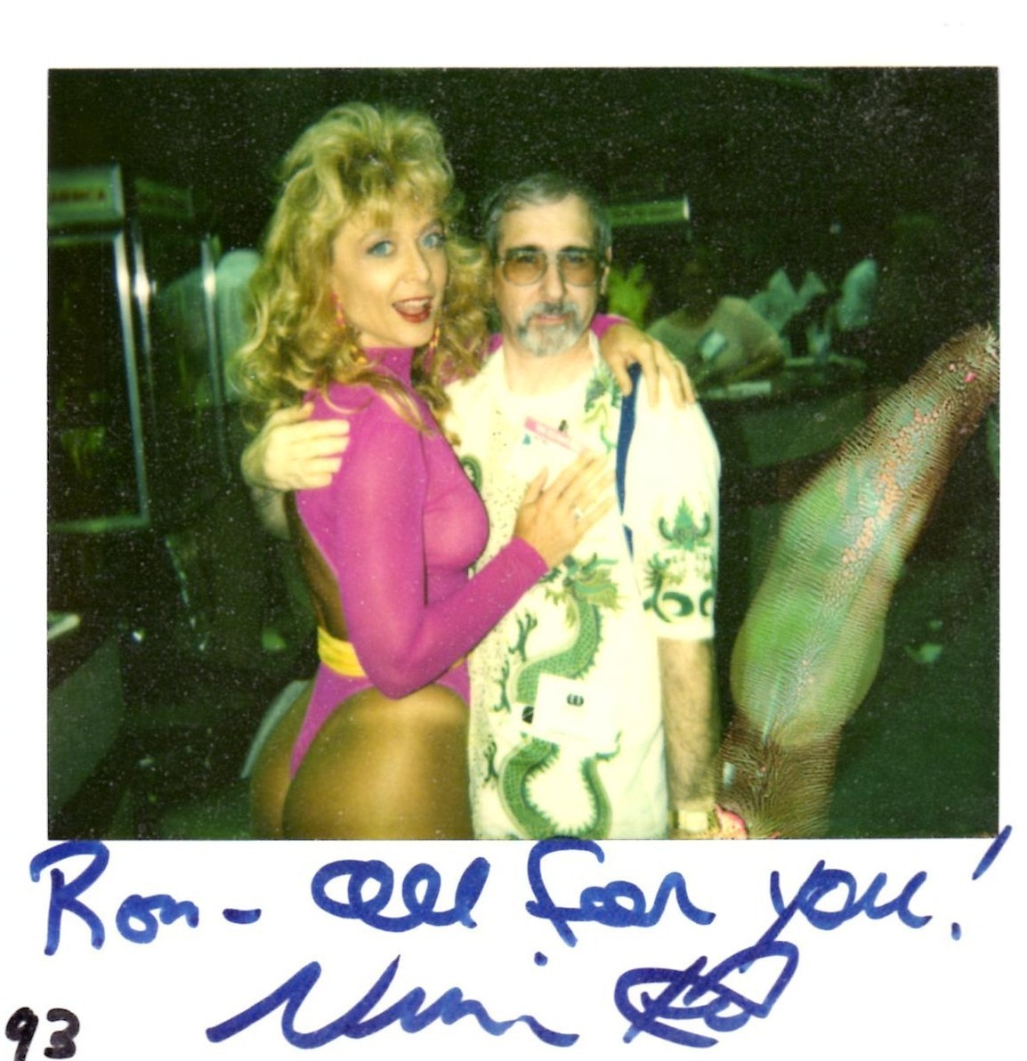 This is a rare signed Poloroid photograph of adult movie star Nina Hartley in 1993. I owned a video store and there were annual 4 day Video Software Dealer Association Conventions in either Las Vegas or Los Angeles in the 1990's. A section of the show was devoted to Adult Entertainment and like the major studios, they would bring out their stars.