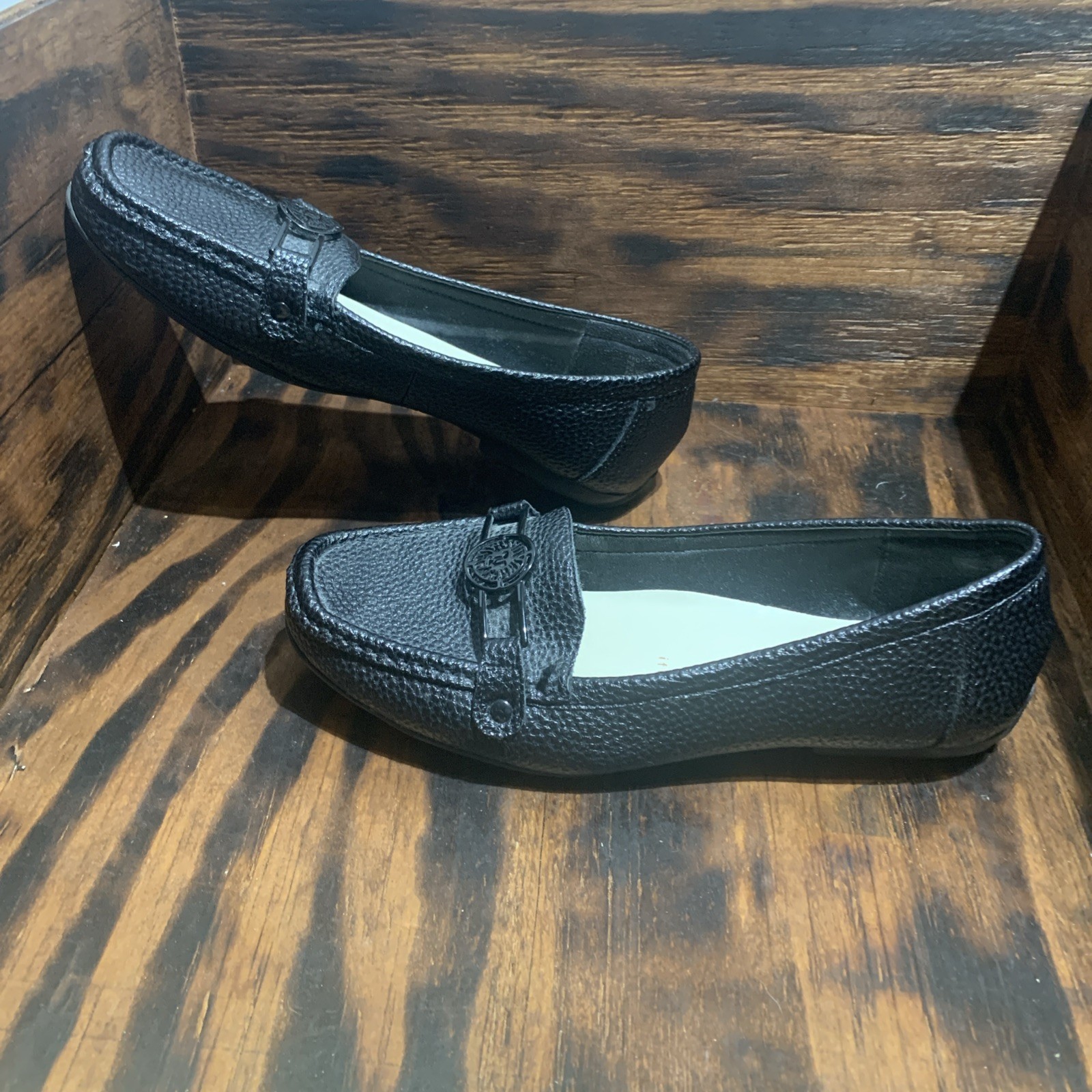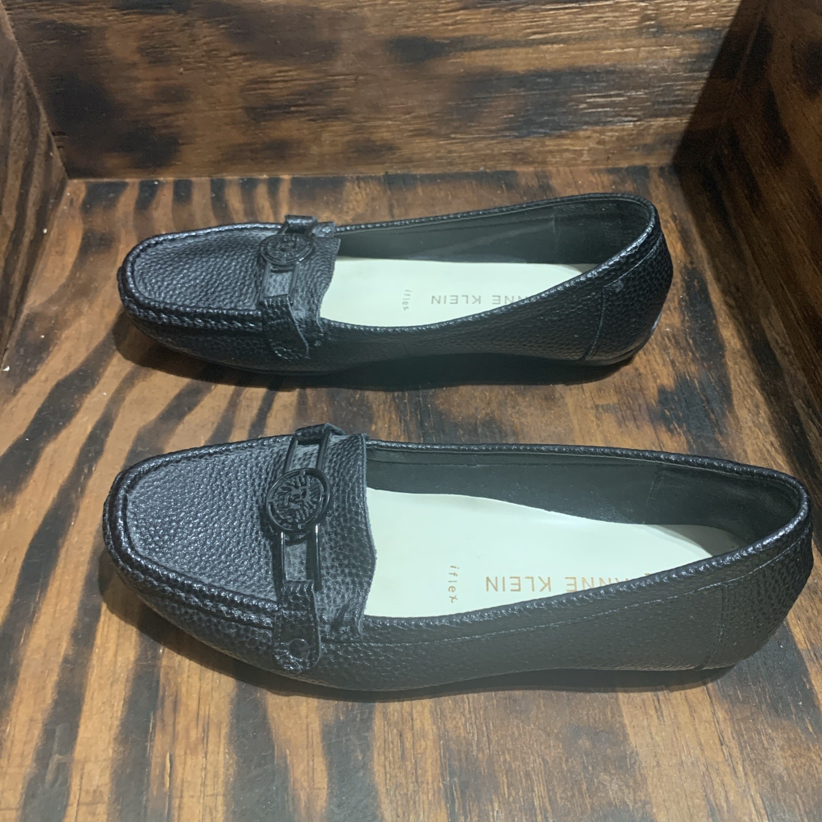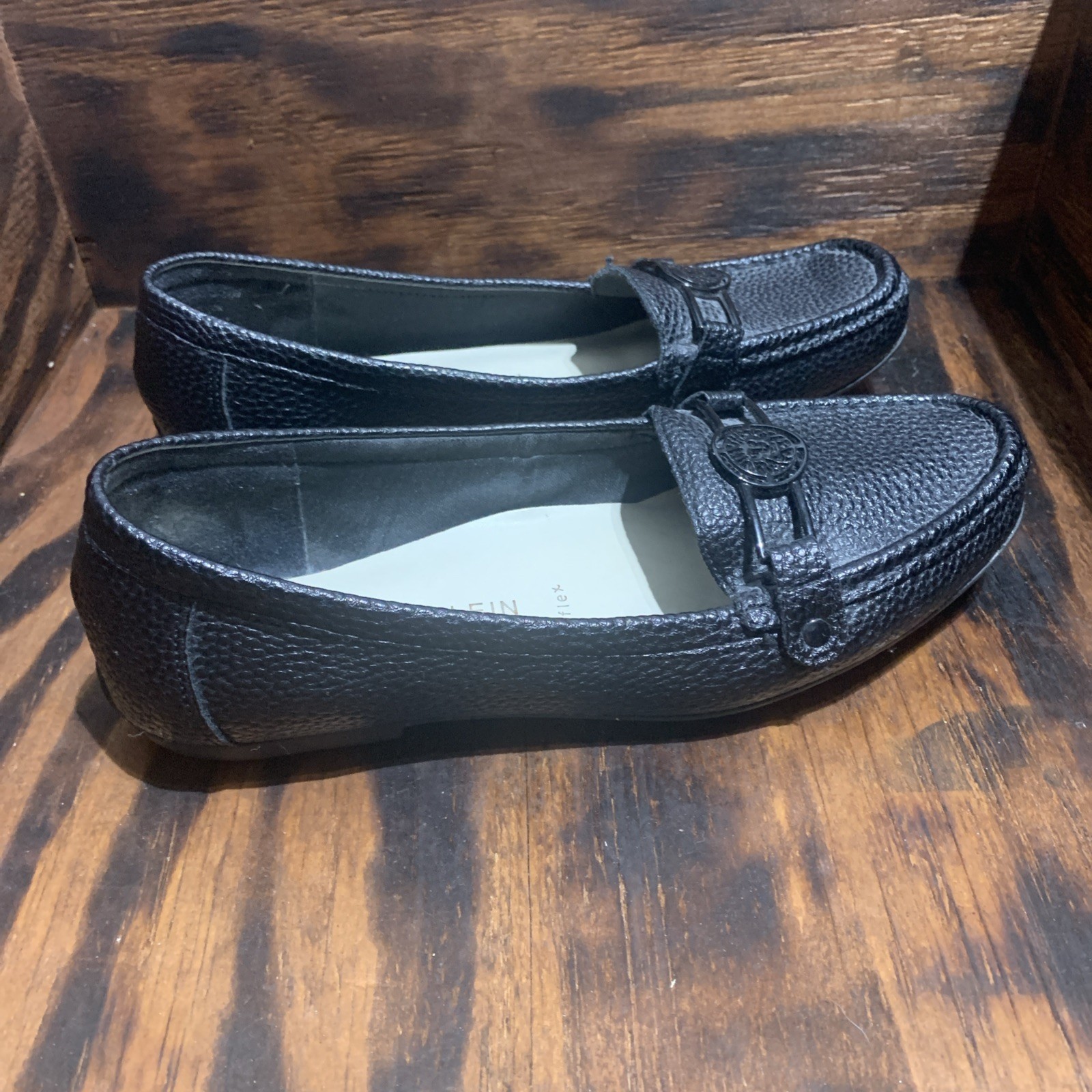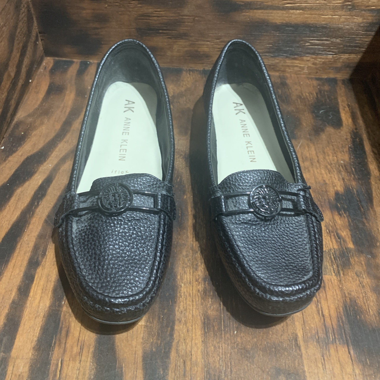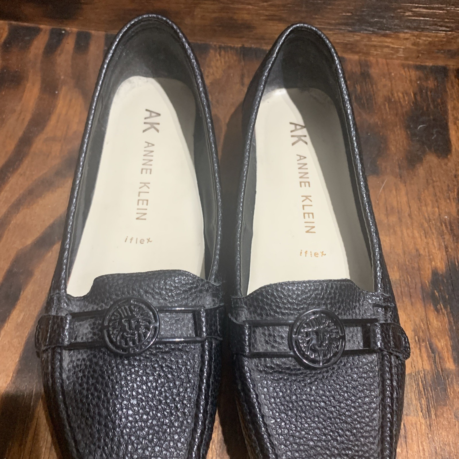 AK Anne Klein Women Iflex Faux Black Leather Flats size 7M