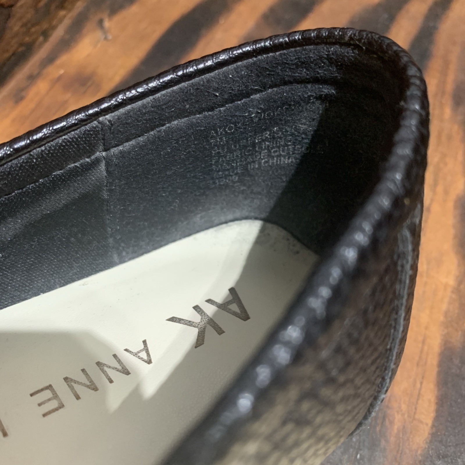 The AK Anne Klein Women's Iflex Faux Black Leather Flats in size 7M are stylish and comfortable shoes perfect for any woman's wardrobe. Made of faux leather with a sleek black color, these flats feature the Anne Klein iFlex product line, ensuring quality and durability. Designed for women with a medium width, these flats are ideal for everyday wear or for any special occasion, adding a touch of elegance and sophistication to any outfit. Made in China, these Anne Klein flats combine fashion and functionality for the modern woman.