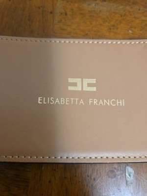 Elisabetta Franchi Black Vegan Leather Wide Belt 42 Gold Metal Logo Buckle NWT