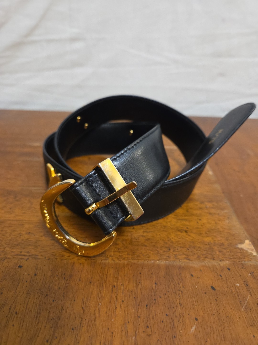 Paloma Picasso Womens Leather Belt Textured Gold Tone "X" Hardware Sz Medium . Condition is Pre-owned - Excellent. Shipped with USPS Ground Advantage.