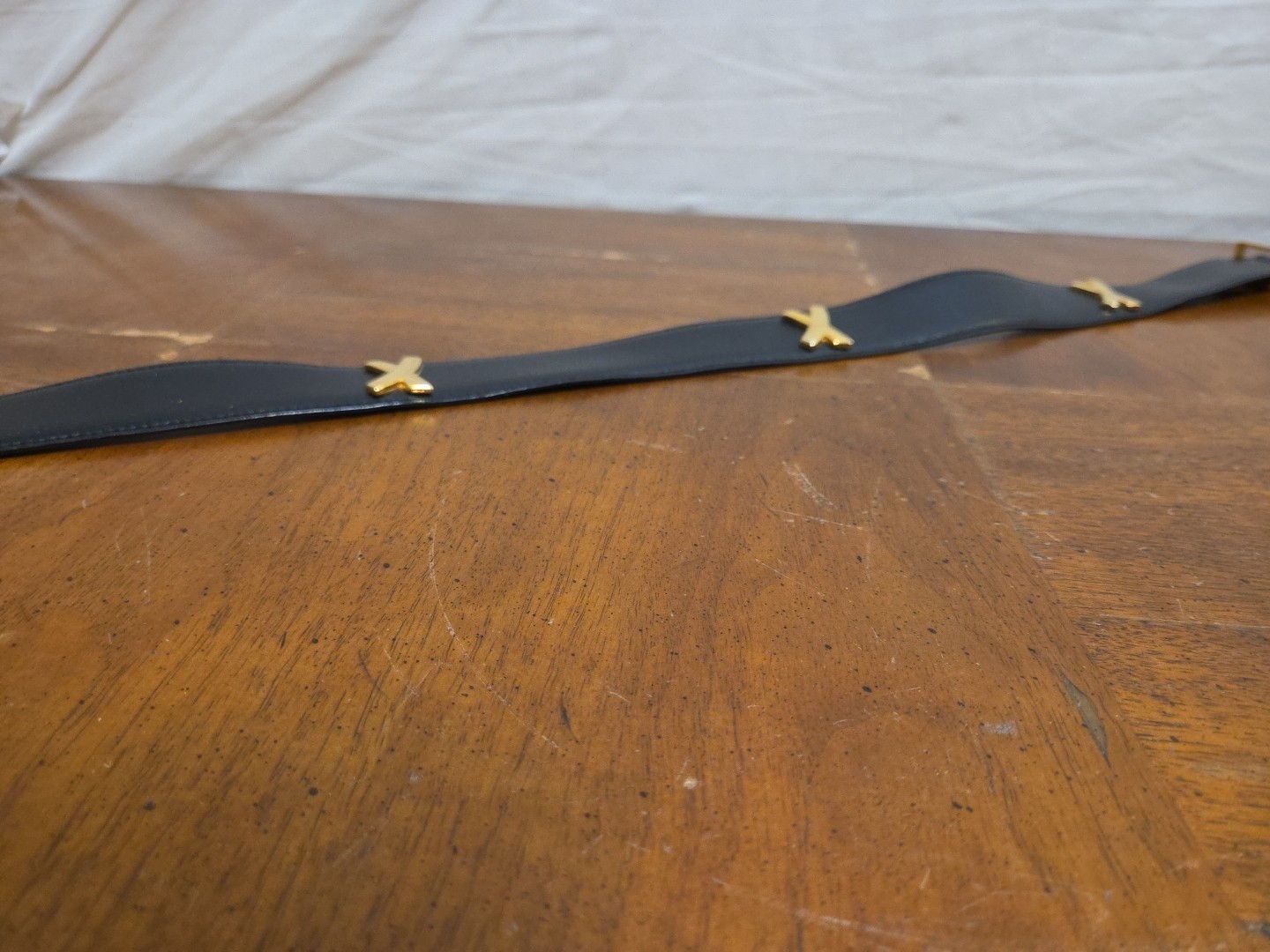 Paloma Picasso Womens Leather Belt Textured Gold Tone "X" Hardware Sz Medium