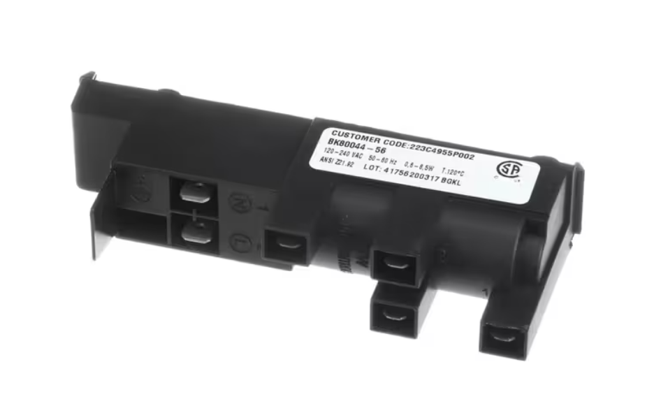 The GE Appliance BK80044-56 / 223C4955P002 / 41756200317BGKL Spark Module is a genuine OEM replacement part designed for GE gas ranges. This spark module provides the electrical ignition for the surface burners, ensuring a reliable and consistent flame every time you cook. If your burners are not igniting, clicking continuously, or failing to spark, replacing the spark module restores proper ignition and dependable performance.