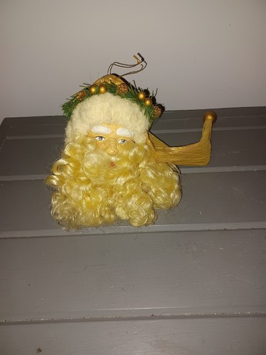 Santa Claus Face Ornament Gold Hat White Full Fluffy Beard Head 7?