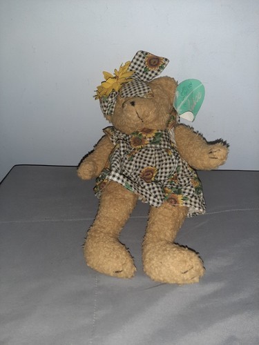 Vintage 13" Jointed Plush Sunflower Teddy Bear Dress and Bow by Embrace for Thompson Holland