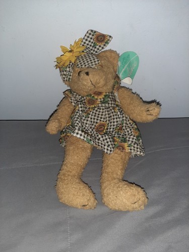 Vintage 13" Jointed Plush Sunflower Teddy Bear Dress and Bow by Embrace