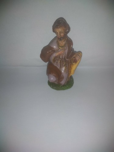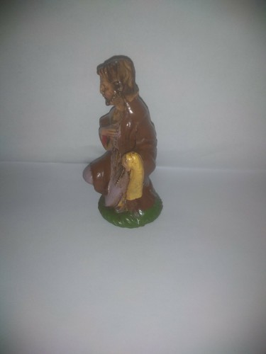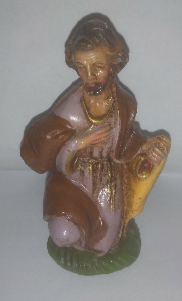 Vintage Molded Nativity Kneeling Joseph Figure. Made in Italy. Approximately 4 inches tall. Good vintage condition.