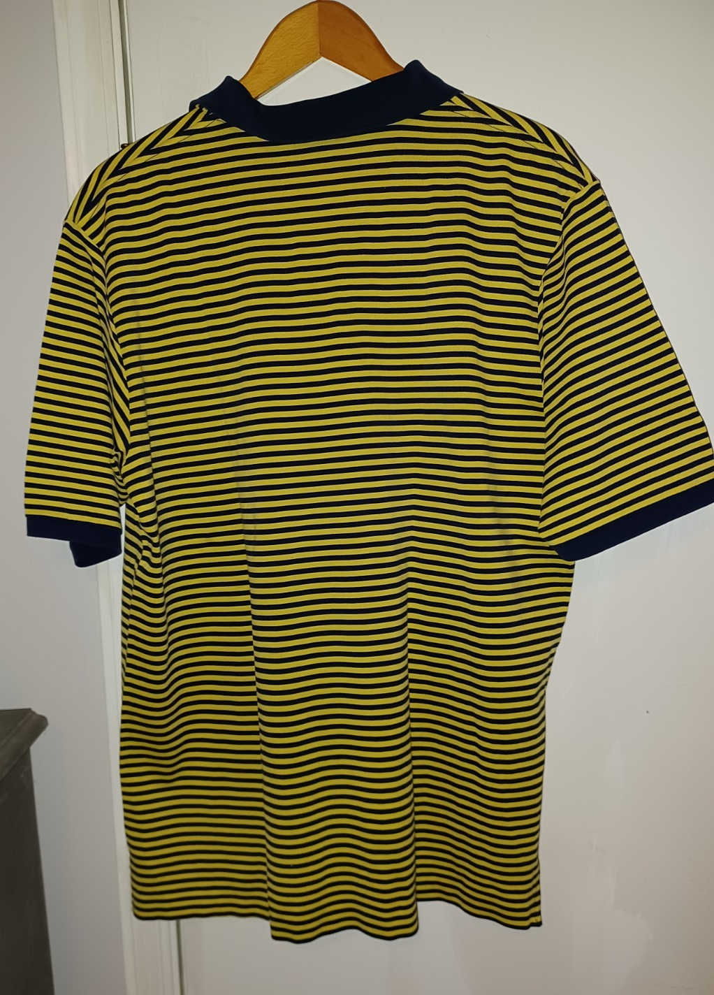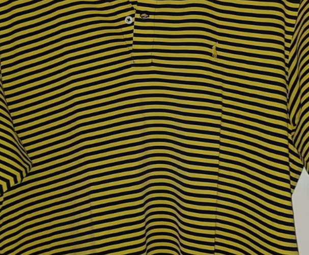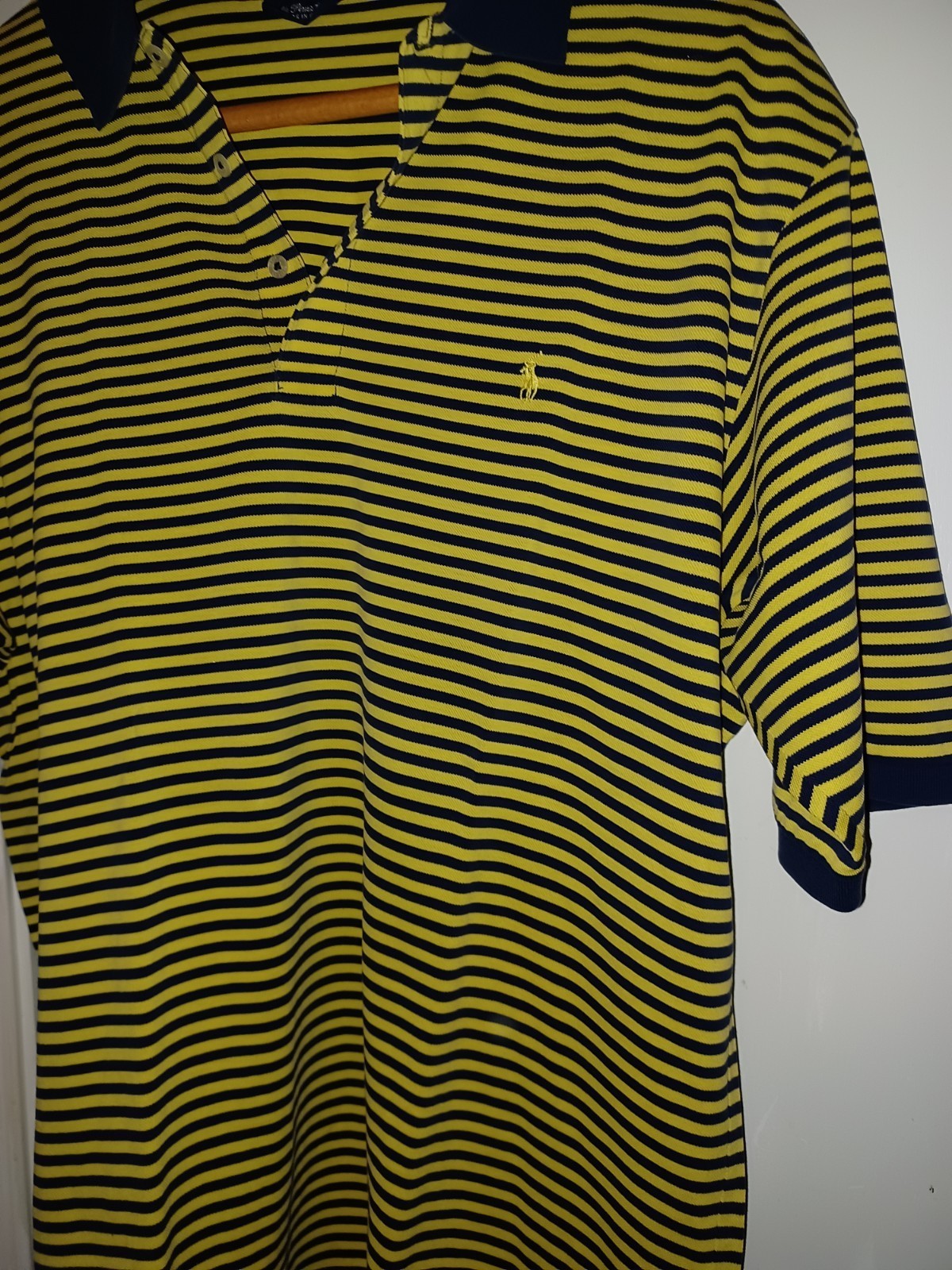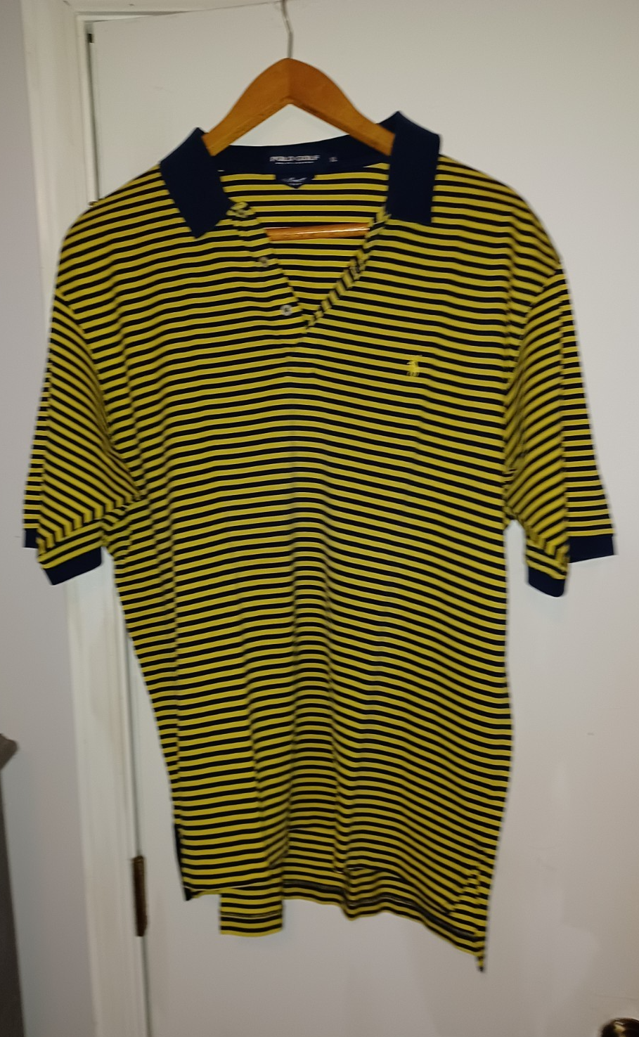 Ralph Golf Lauren Polo Shirt Men's XL Navy Blue With Yellow Stripes Pony Logo