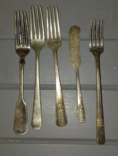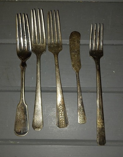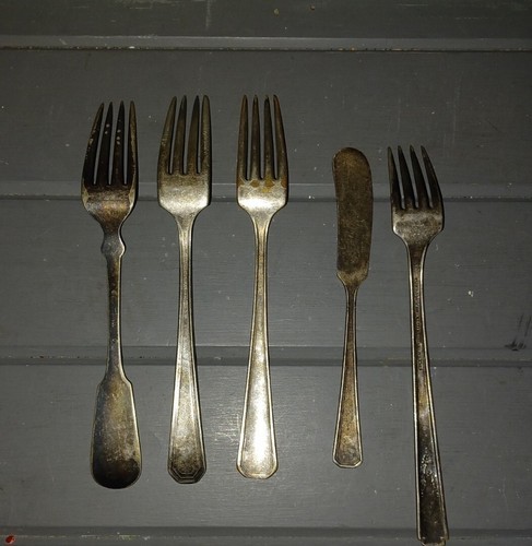Silver Plate Mixed Lot of 5 Crafts/Jewelry Forks Butter Knife Rogers Brothers