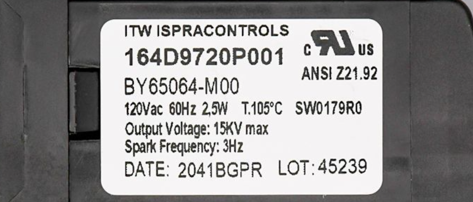 The GE Appliance BY65064-M00 / 164D9720P001 Spark Module is a genuine OEM replacement part designed for GE gas ranges. This spark module generates the electrical spark needed to ignite the gas burners, ensuring quick and reliable burner ignition. If your burners are not lighting, clicking continuously, or failing to ignite properly, replacing the spark module restores safe and dependable cooking performance.