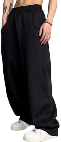 Aelfric Eden Mens Loose High Waist Pants Solid Elastic Casual Pants Hip Hop Streetwear Black size XS