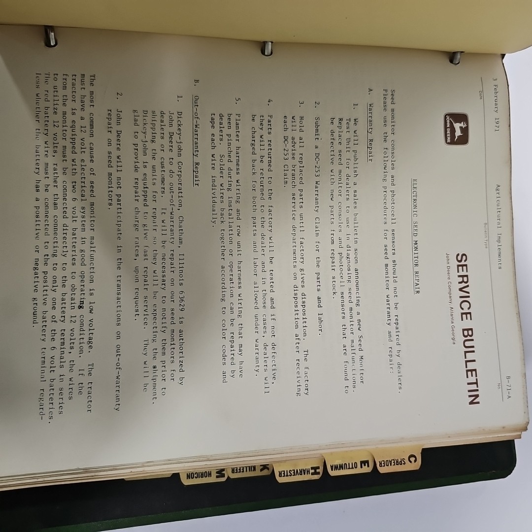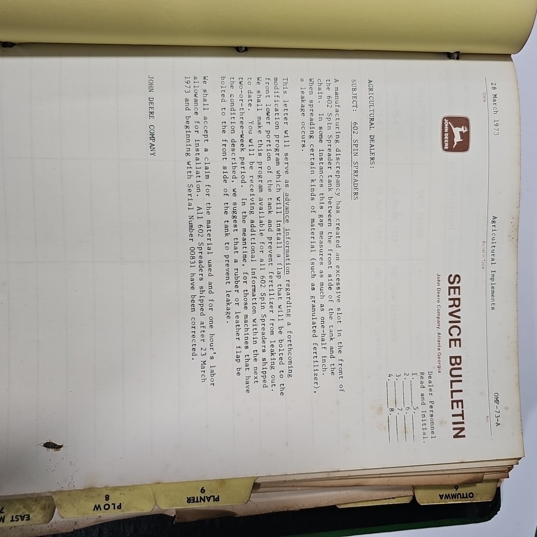 John Deere Agricultural Implement Service Bulletins 1971 And 1973 Binders Vtg