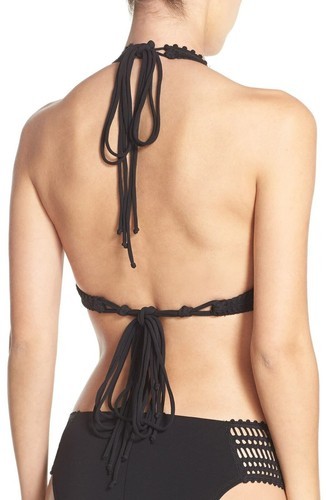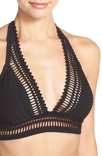Robin Piccone 160505 Sophia Crochet Halter Bikini Top SZ S Black