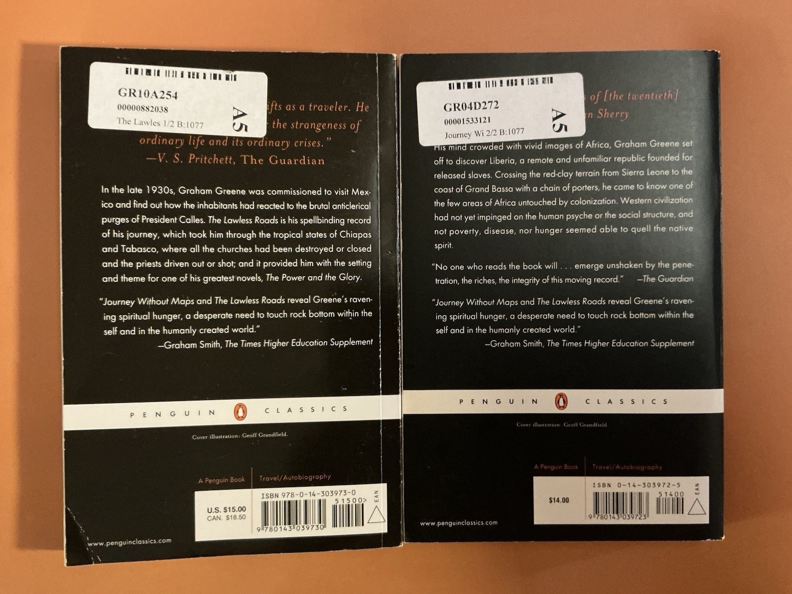 Pair of classic travel memoirs by Graham Greene, reissued in matching Penguin Classics editions.