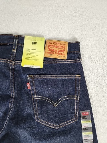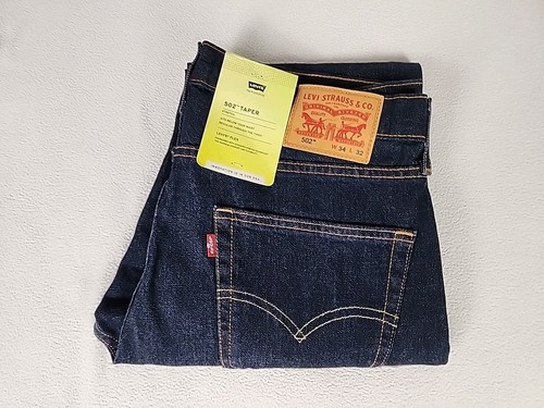 Levi's 502 Regular Fit Zip Fly Tapered Leg Denim Jeans 34X32 Men's Dark Blue
