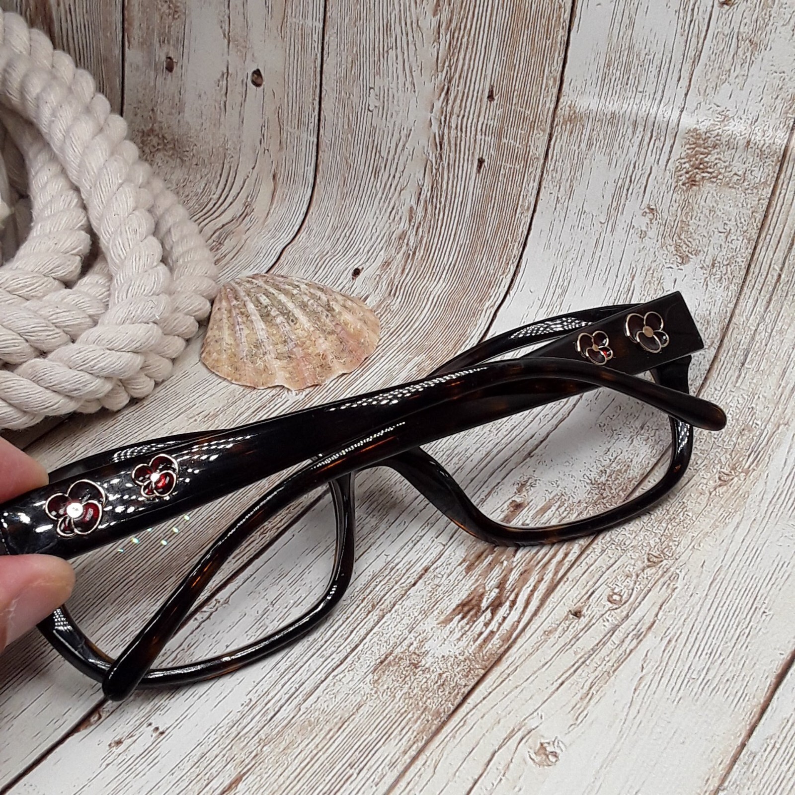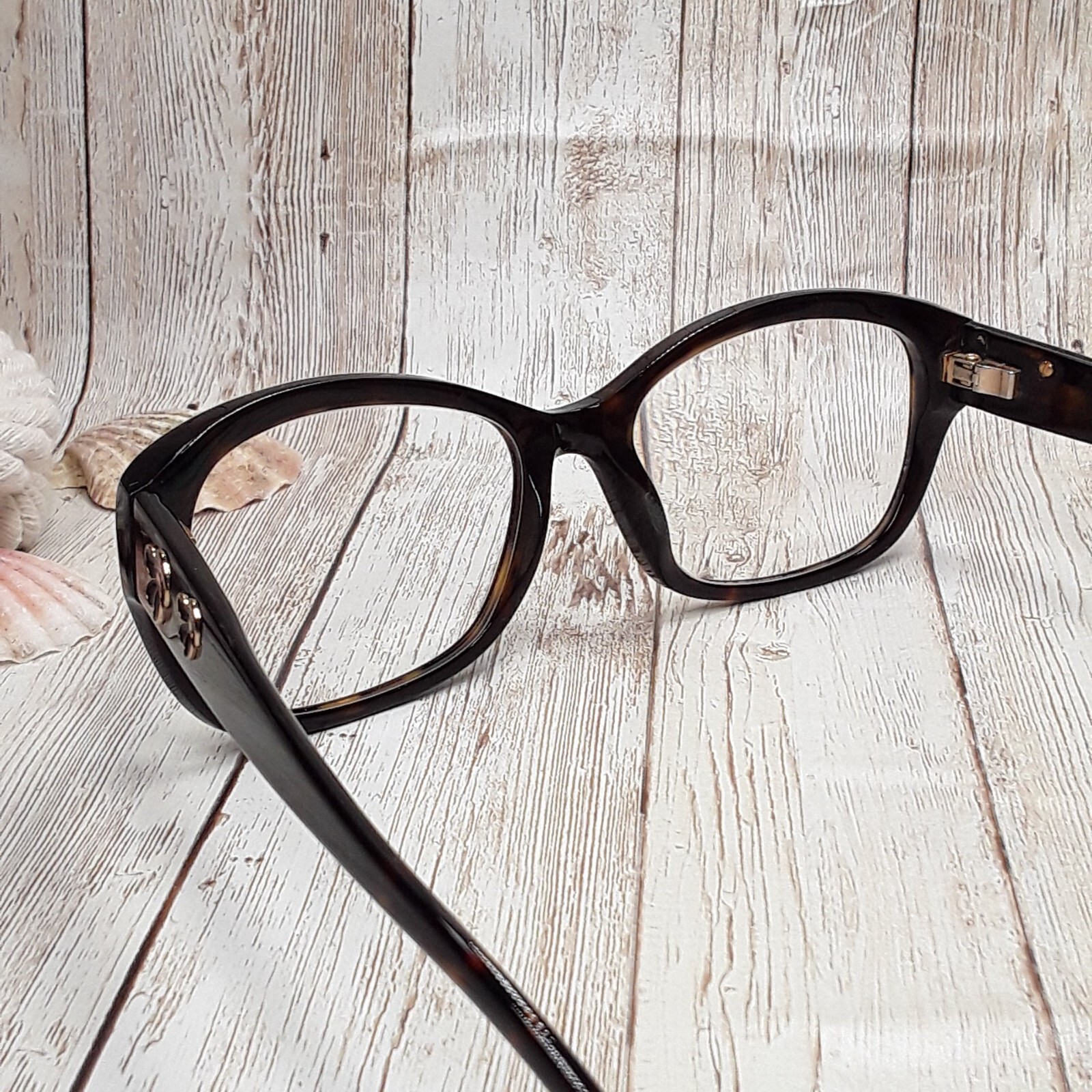 For Sale: Kirkland Signature Tortoise Havana Brown Eyeglasses FRAMES ONLY with Floral Design Accents - KS Hedges #791161