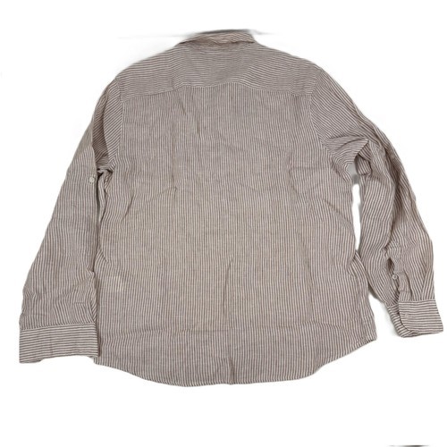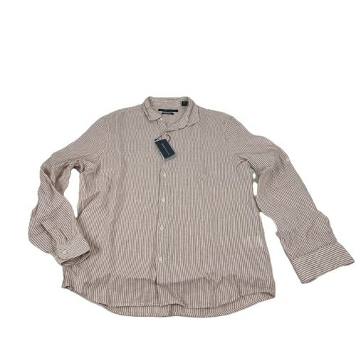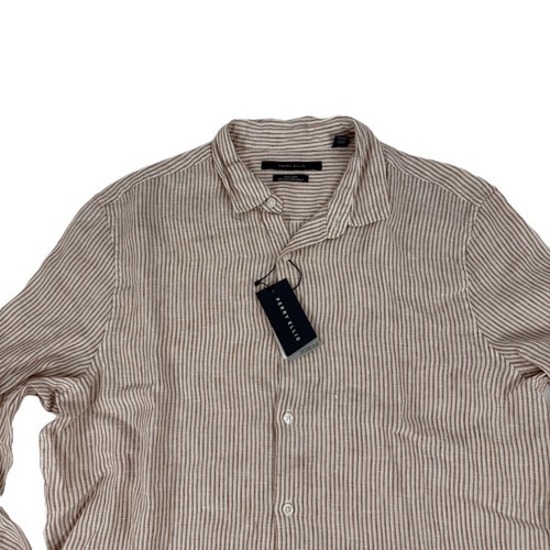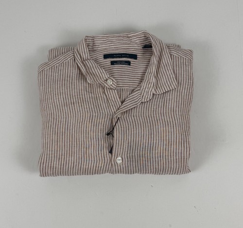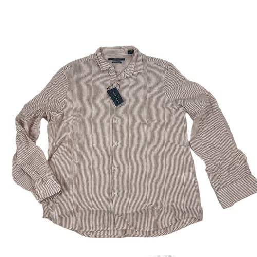 Perry Ellis Stripe Linen Roll-Sleeve Woven Button Down Shirt Copper Brown-Large