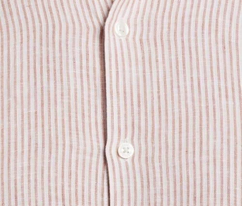 Stay cool and comfortable with this effortless long-sleeve shirt from Perry Ellis. This casual button-up shirt is printed with slim vertical stripes in three colors, giving it a classic look that easily fits into any season or setting. Its 100% linen fabric that is highly breathable and lightweight, and plain weave fabrication gives the material impressive durability. The shirts shorter length makes it ideal for wearing untucked and roll tabs on the sleeves allowing you to create an even more laidback look.
