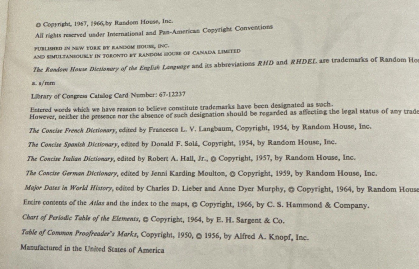 Random House Dictionary of the English Language Unabridged 1967 Hardcover Book