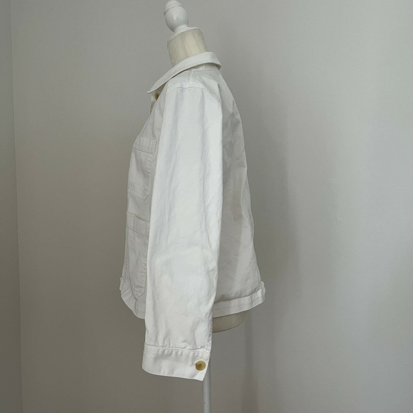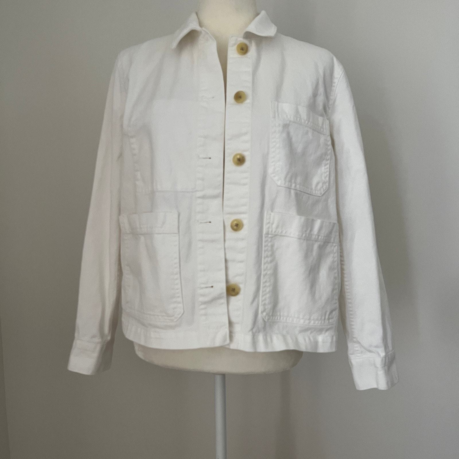 Keywords: Everlane white jacket, chore coat, utility jacket, minimalist fashion, cotton workwear, casual layering piece, sustainable style, neutral outerwear, closet staple
