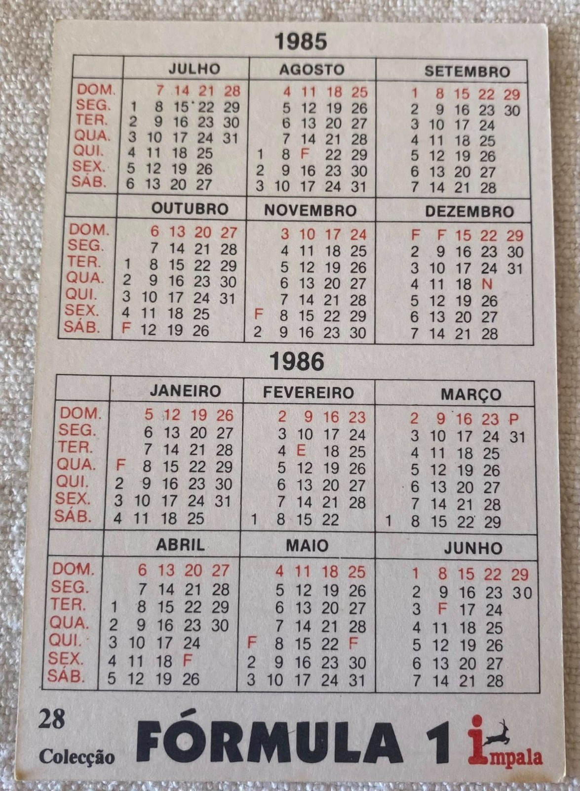 ⭕VTG Formula 1 AYRTON SENNA pocket calendar 1985 F1 pilot