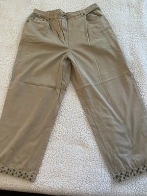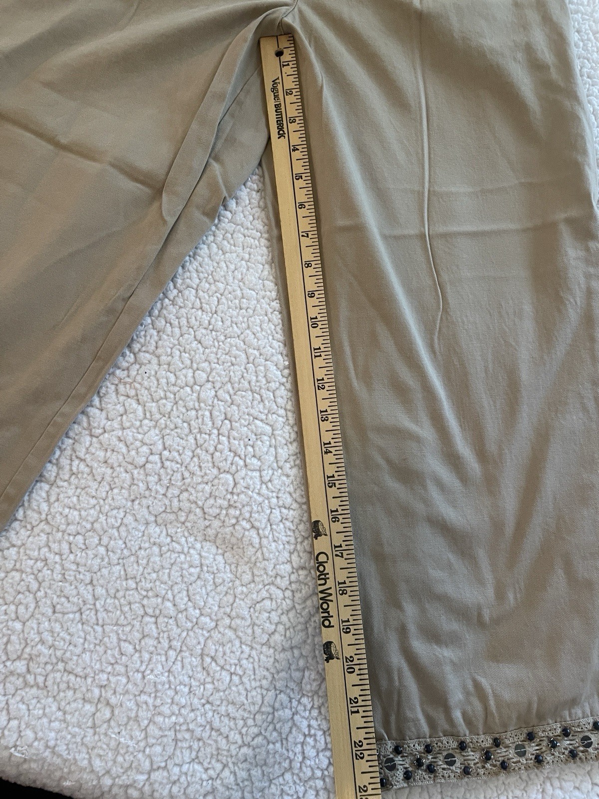Ruby Rd. Khaki Cropped Pants with Embellished Hem Size 10