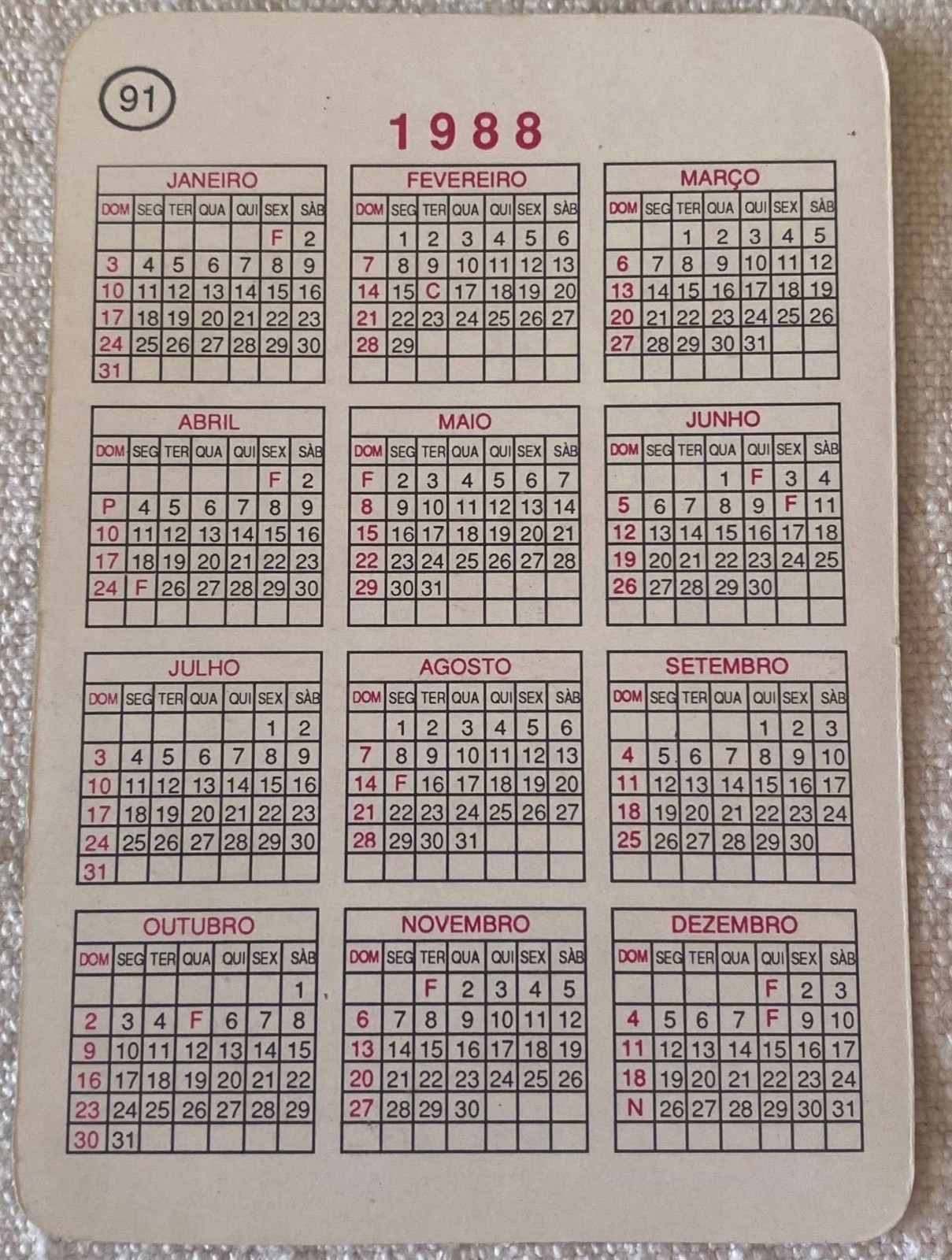 Pocket calendar used em estado excelente (sem manchas, sem dobras):
