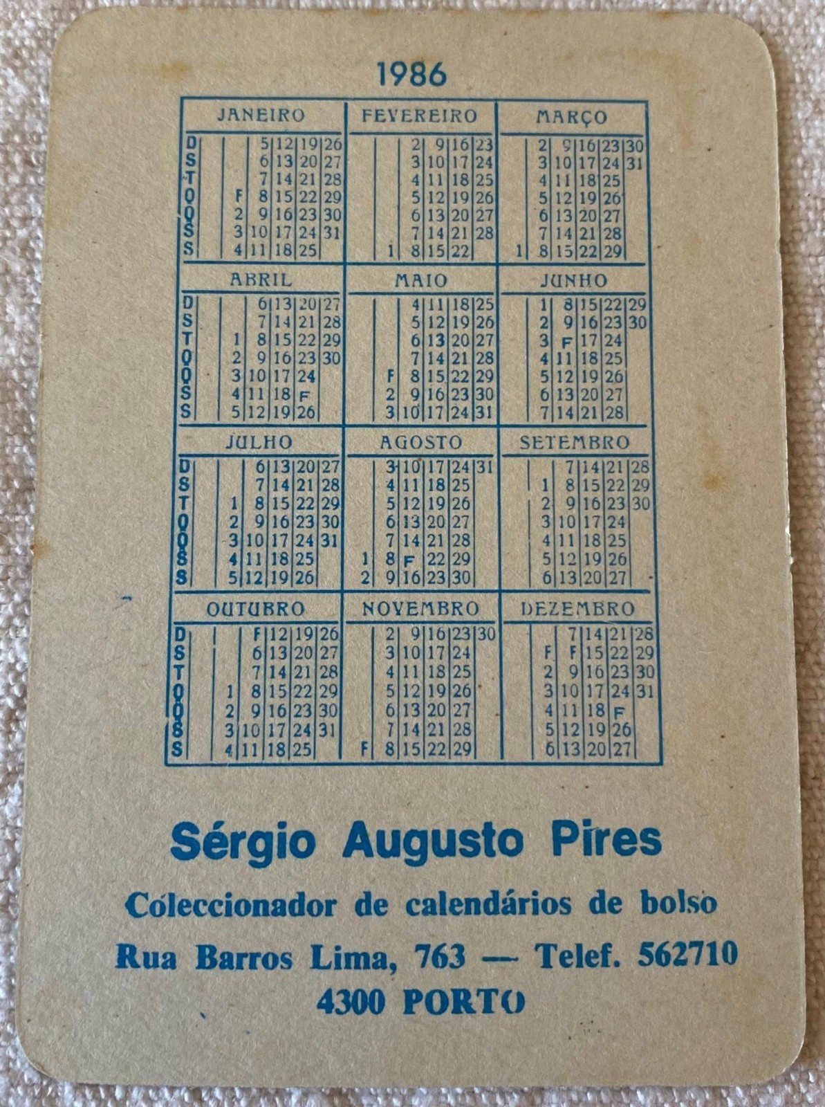 ⭕Vtg Card Pocket Calendar 1986 Portugal and similar items