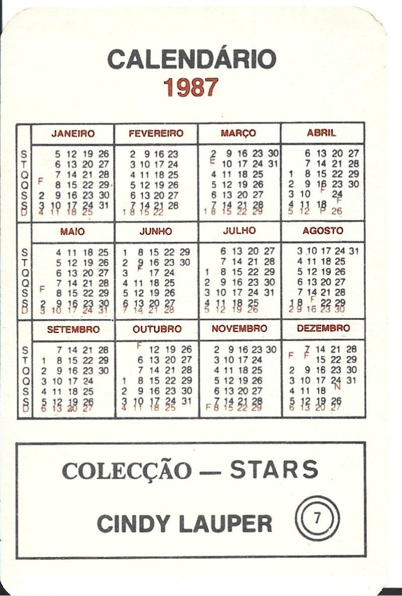 ⭕VTG card pocket calendar 1987 CINDY LAUPER Portugal group music singer