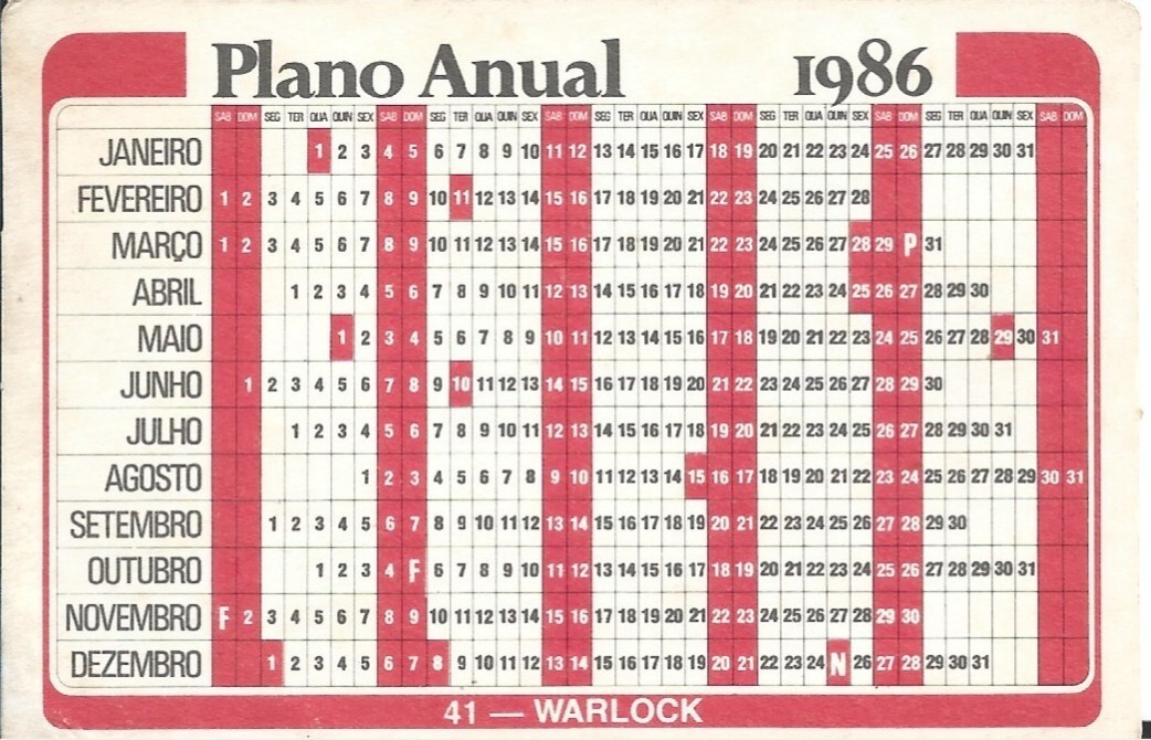 ⭕VTG card pocket calendar 1986 WARLOCK and similar items
