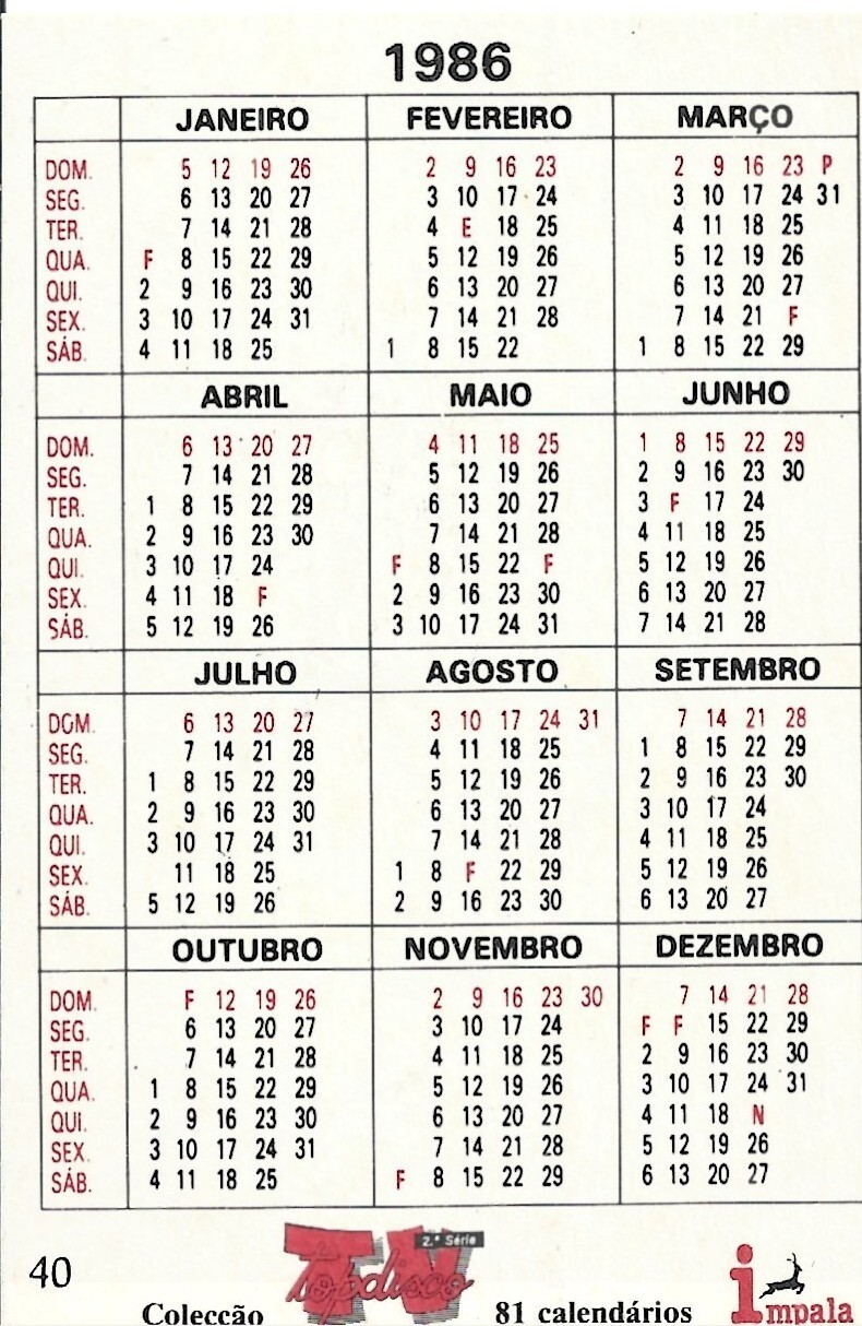 ⭕VTG card pocket calendar 1986 OLIVIA NEWTON-JOHN Portugal group music singer