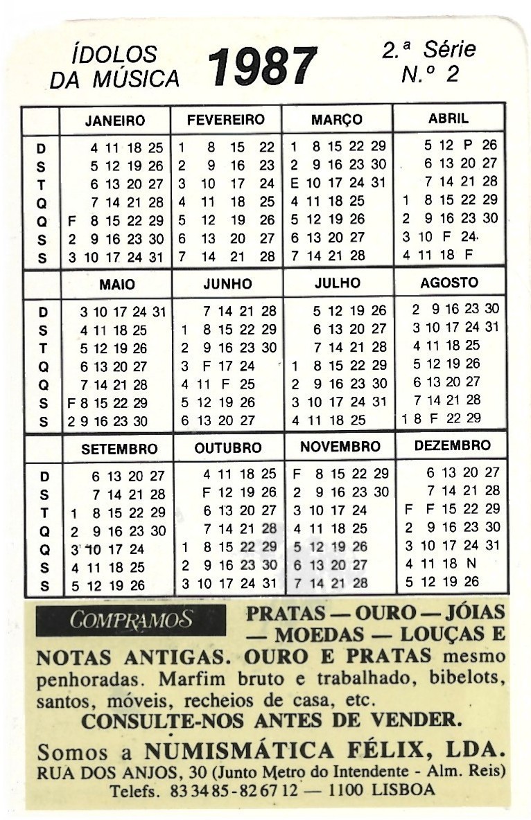 ⭕VTG card pocket calendar 1987 LEE AARON Portugal group music singer