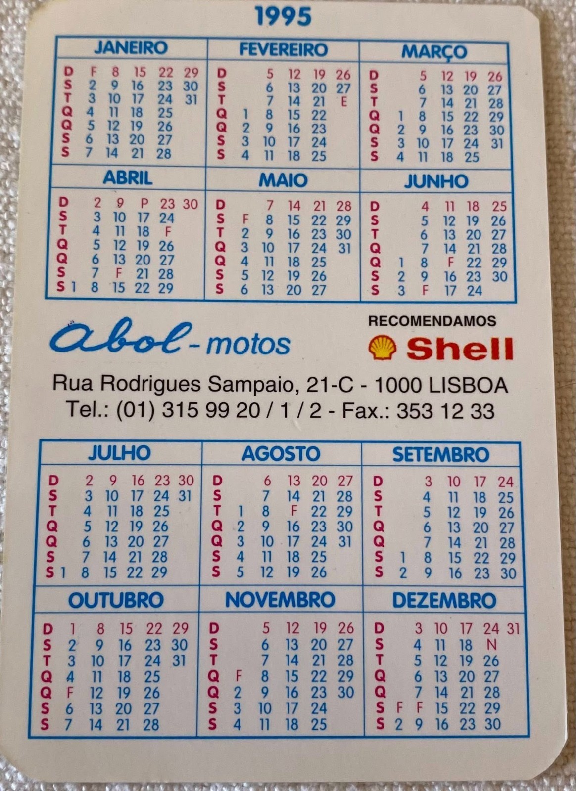 ⭕VTG, card pocket calendar 1995 SHELL TRIUMPH TIGER Portugal advertising