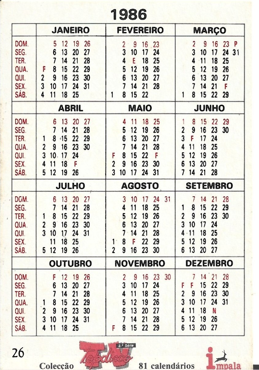 Pocket calendar used em estado excelente (sem manchas, sem dobras):