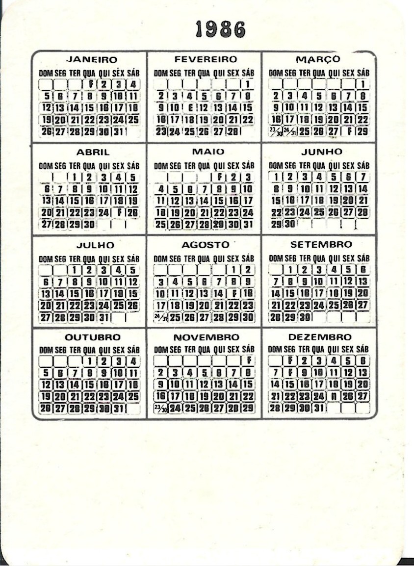 Pocket calendar used em estado excelente (sem manchas, sem dobras):