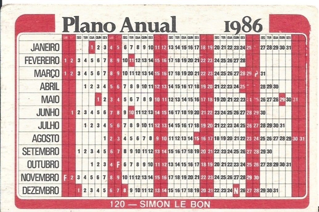 ⭕VTG card pocket calendar 1986 SIMON LE BON Portugal group music singer