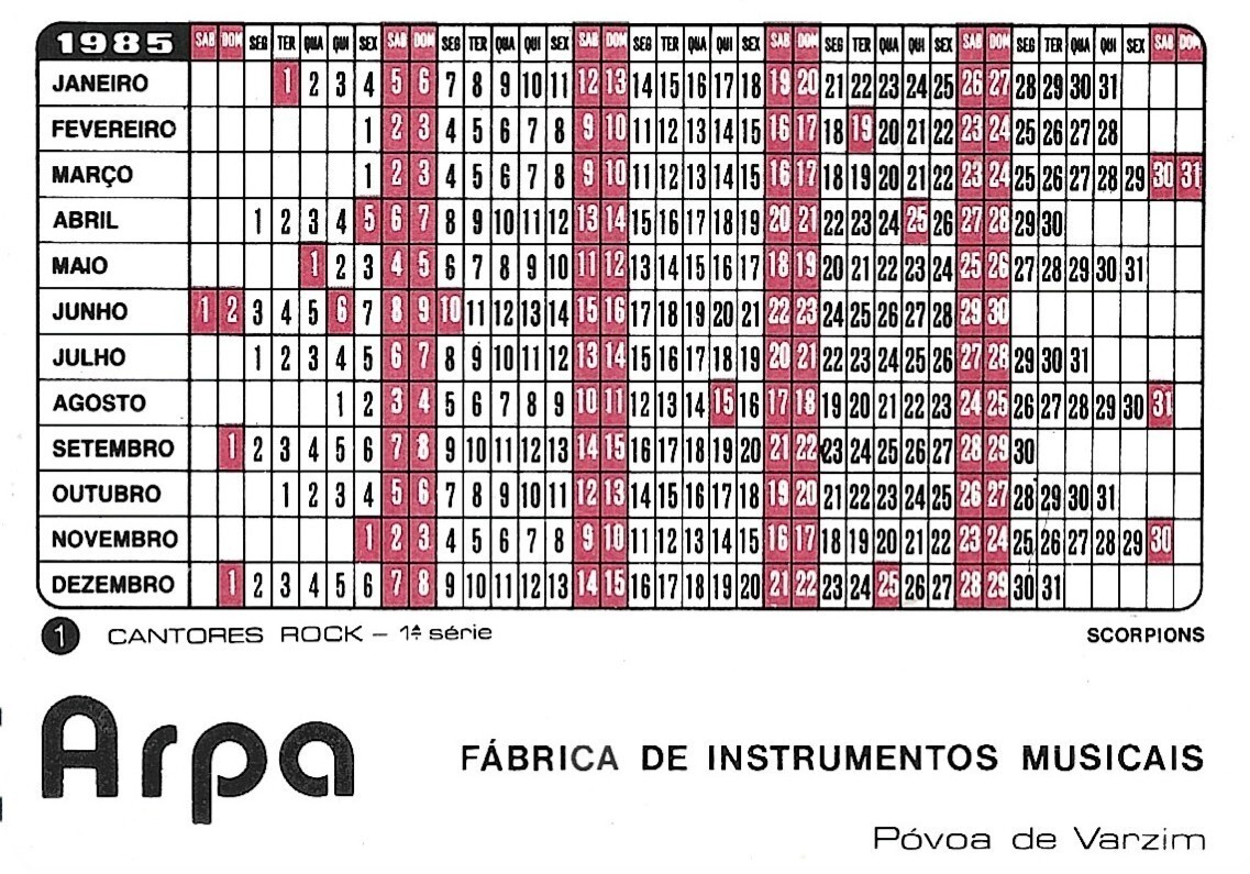 ⭕VTG , card pocket calendar 1985 SCORPIONS Portugal group music singer