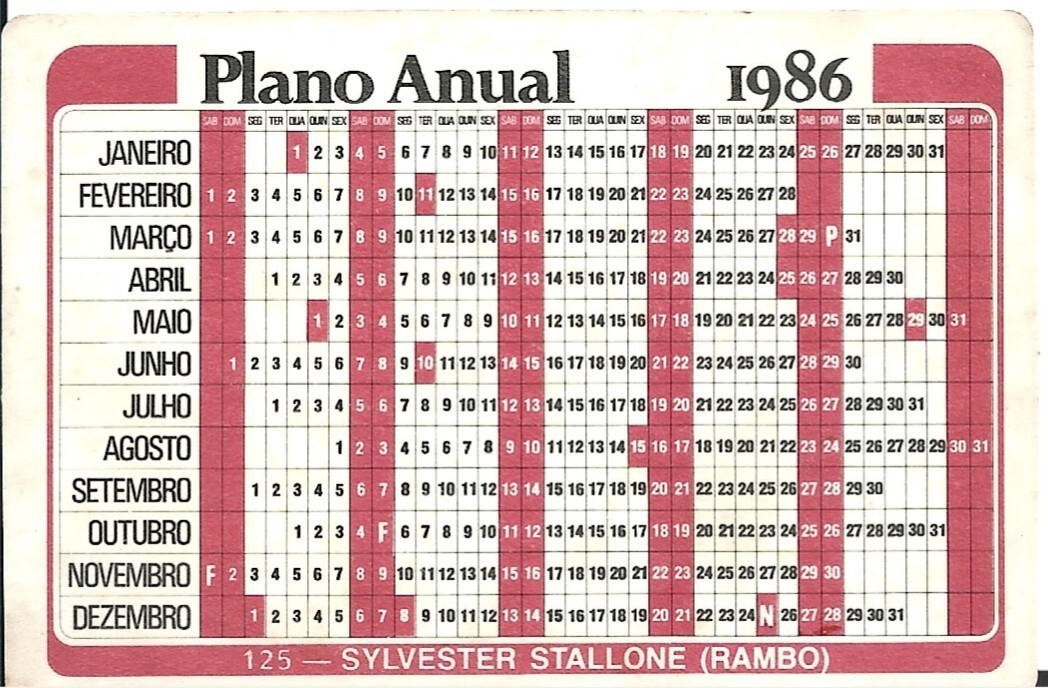 ⭕VTG card pocket calendar 1986 SYLVESTER STALONNE Portugal group music singer