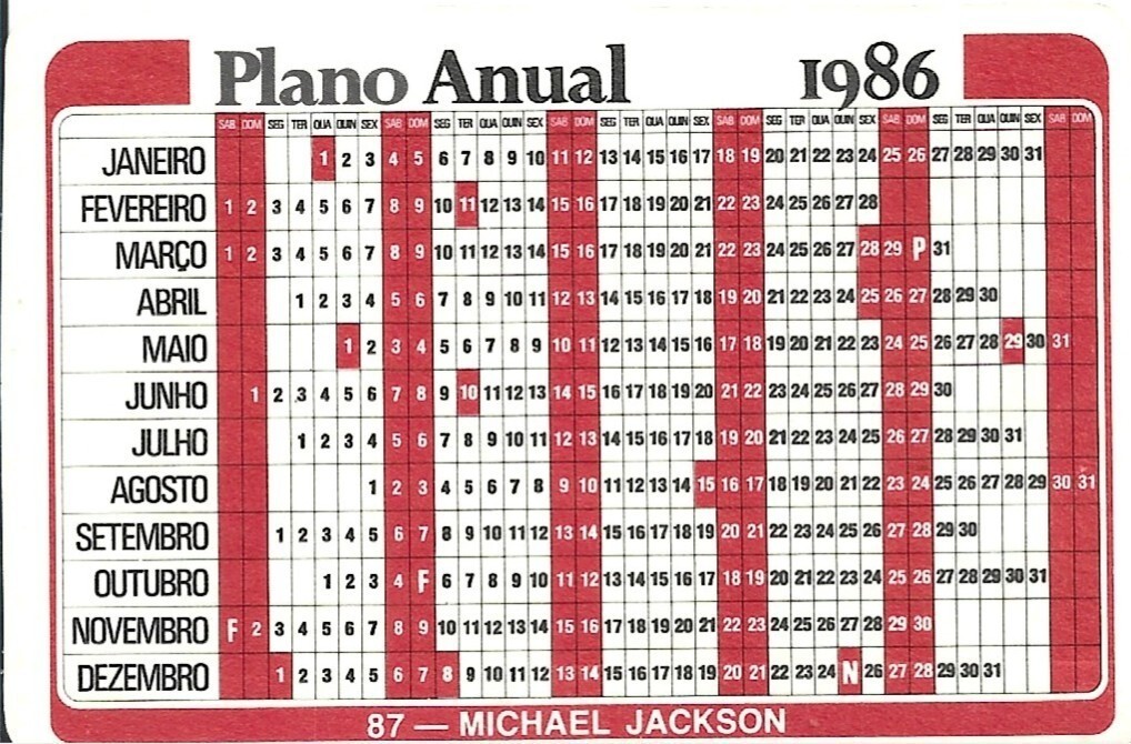 ⭕VTG card pocket calendar 1986 MICHAEL JACKSON Portugal group music singer