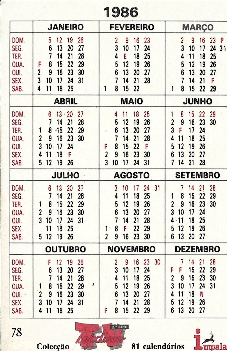 Pocket calendar used em estado excelente (sem manchas, sem dobras):