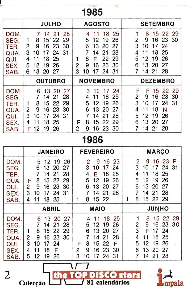 ⭕VTG card pocket calendar 1985 ROLLING STONES Portugal group music singer
