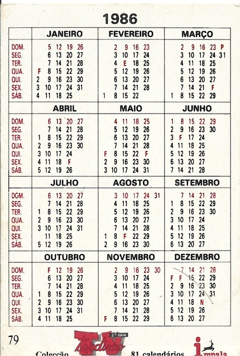 ⭕VTG card pocket calendar 1986 U2 Portugal and 46 similar items