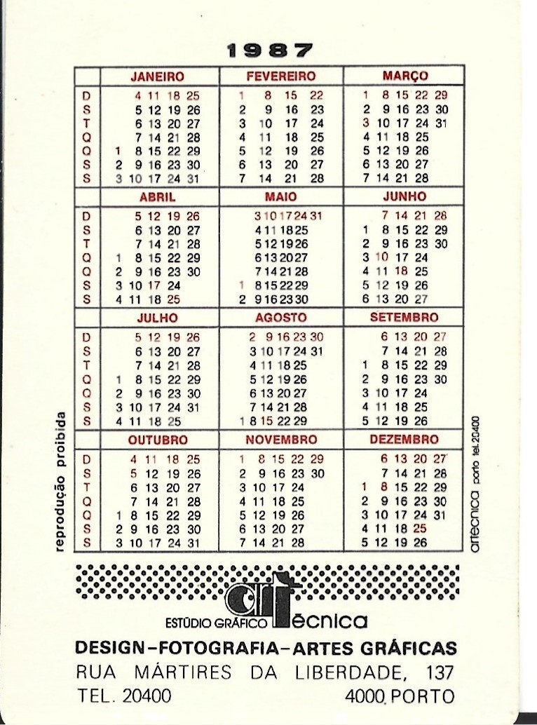 ⭕VTG card pocket calendar 1987 HEART Portugal group music singer