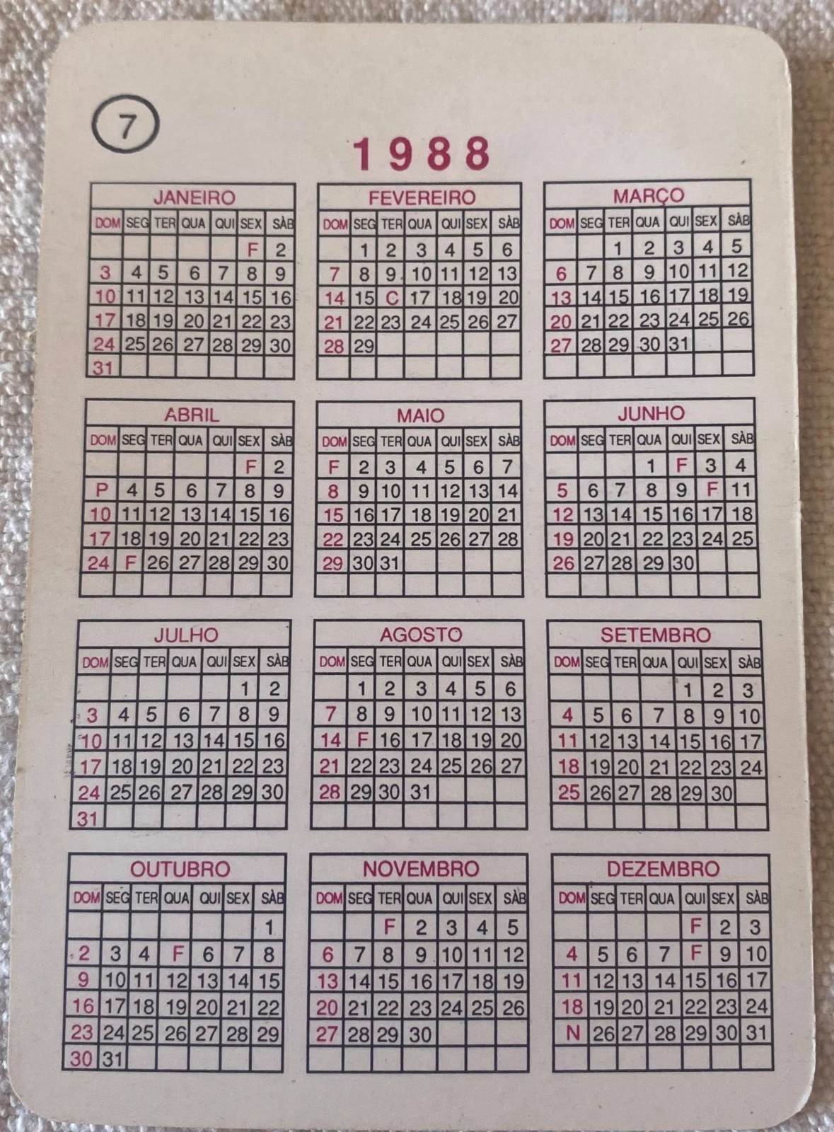 Pocket calendar used em estado excelente (sem manchas, sem dobras):