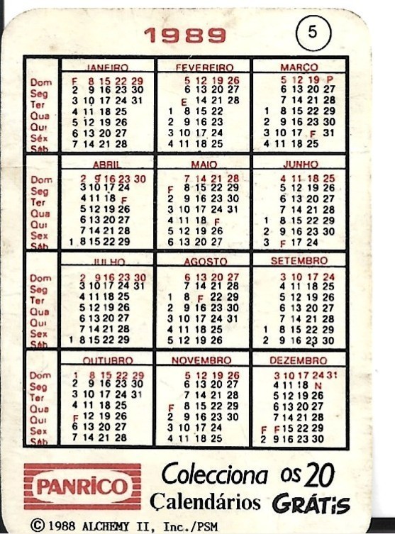 ⭕vtg pocket calendar 1989 PANRICO N.º 5
