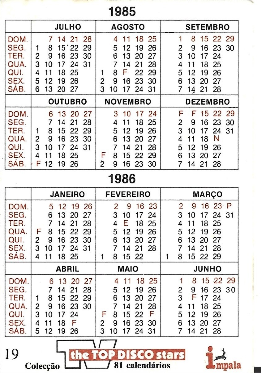 ⭕VTG card pocket calendar 1985 tears for fears Portugal group music singer