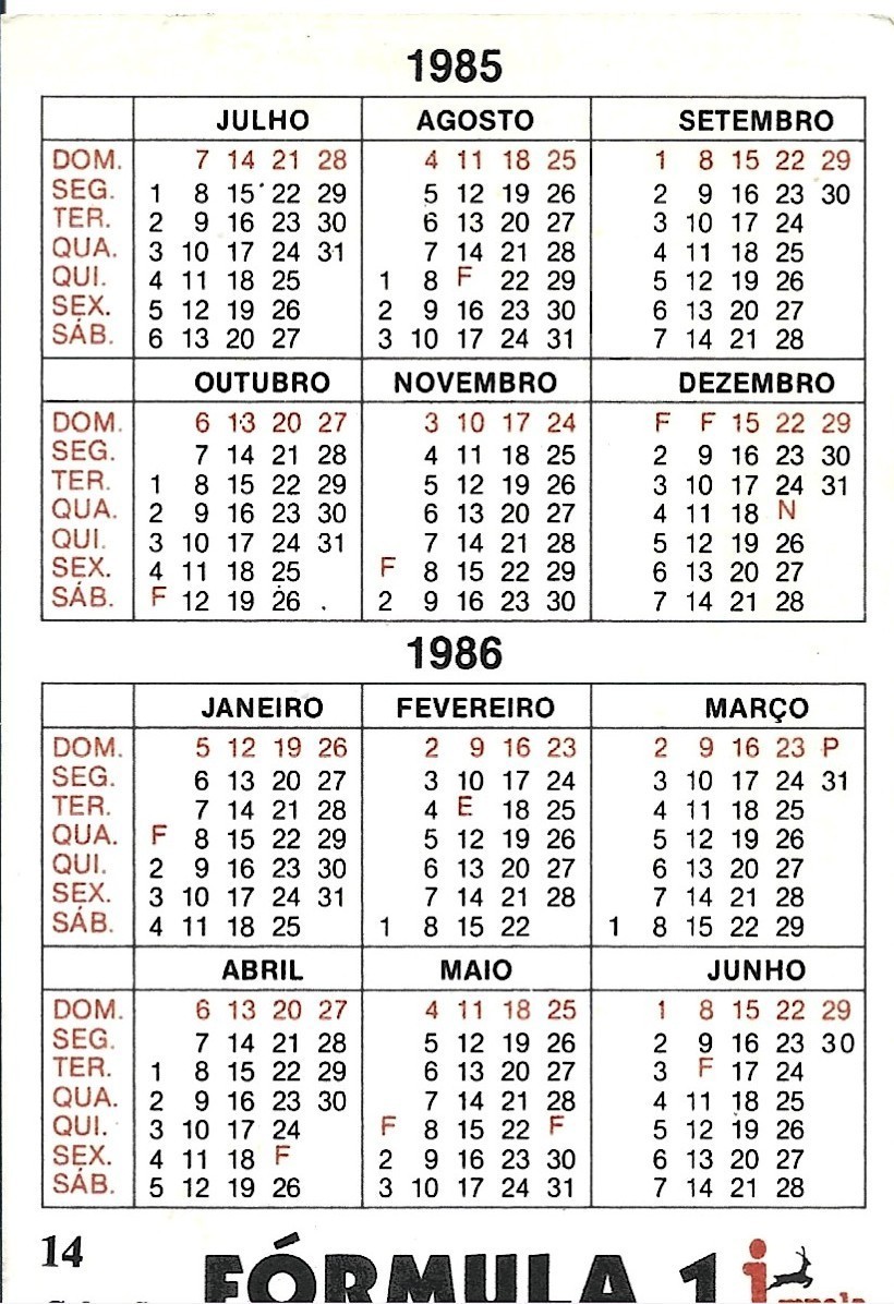 ⭕VTG Formula 1 pocket calendar 1986 F1 pilot CAR