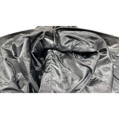 Genuine Italian black leather, taffeta lining, shoulder pads, tailored construction.