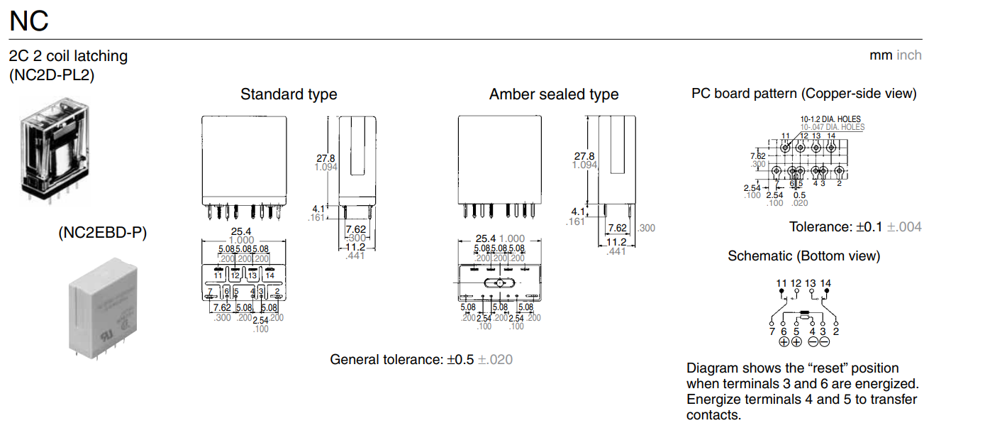 NC2D-PL2-DC12V Matsushita Power Relay 12VDC DPDT 5A 250VAC 10-Pin 2-Coil Latch