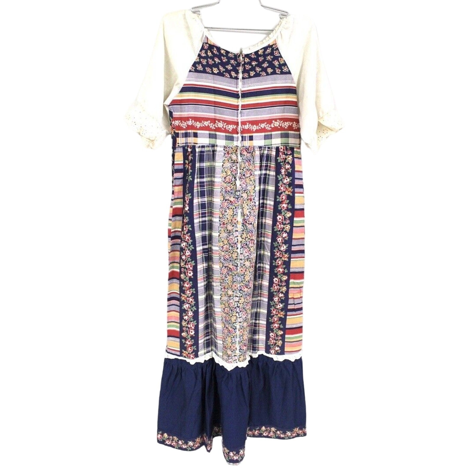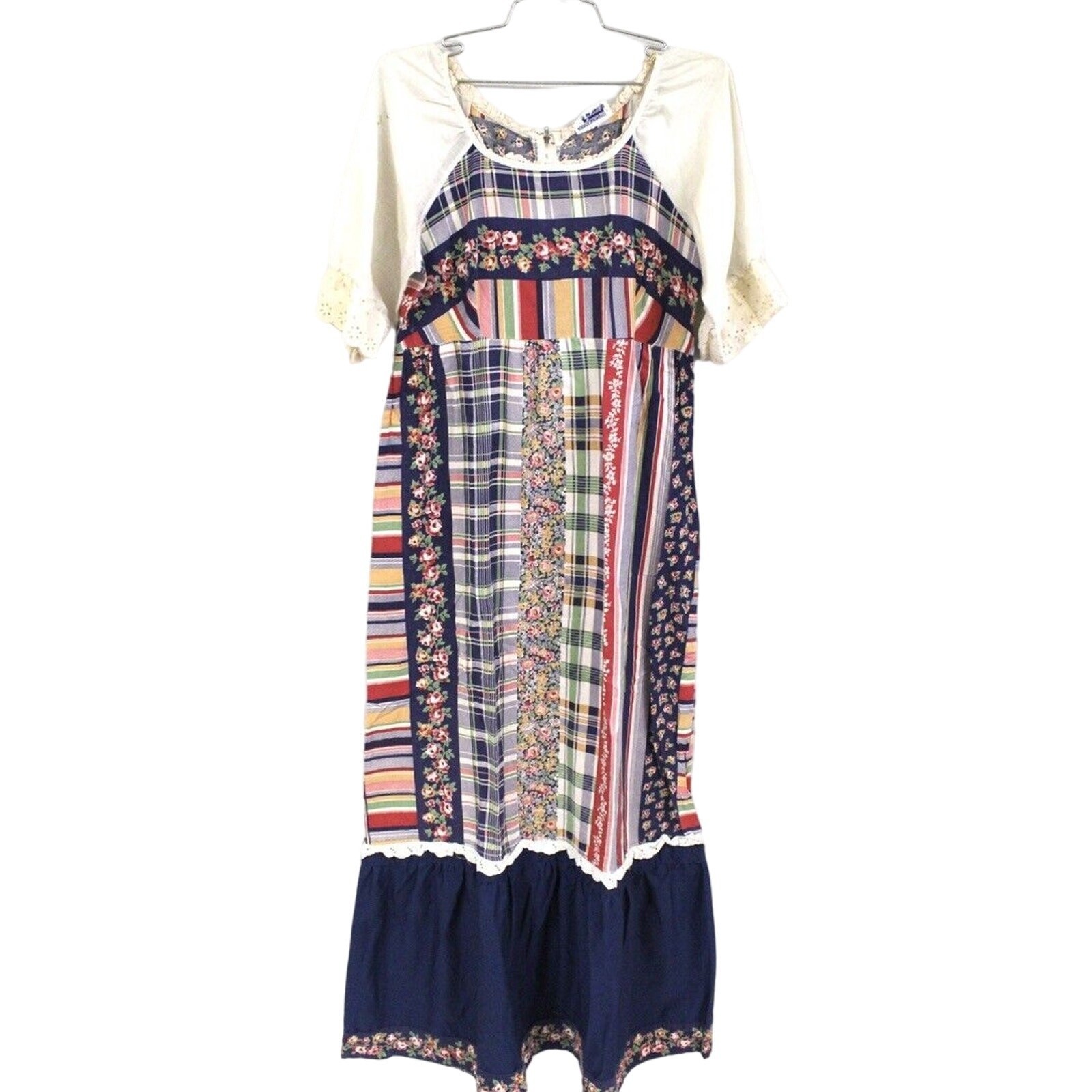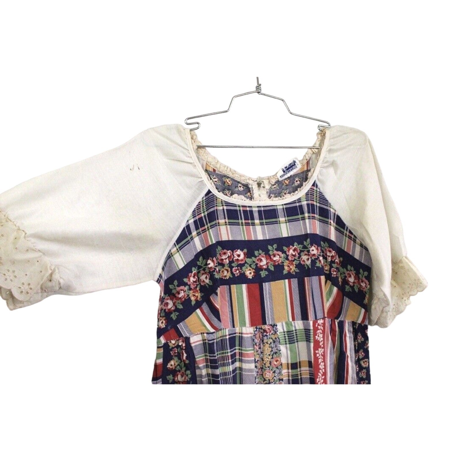 VTG 1970s Berkleigh Juniors Empire Waist Floral Plaid Prairie Maxi Dress S/M